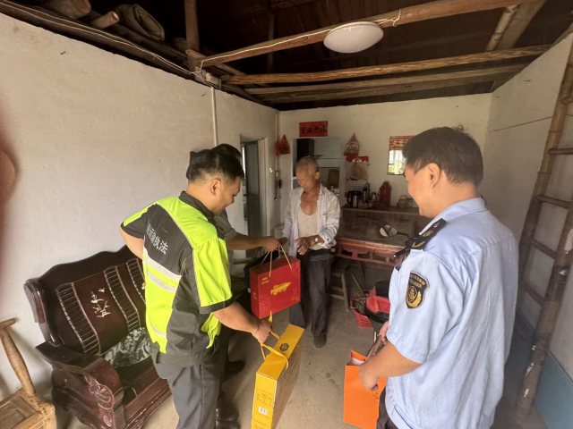 宁杭支队四大队党支部开展中秋慰问五保户活动