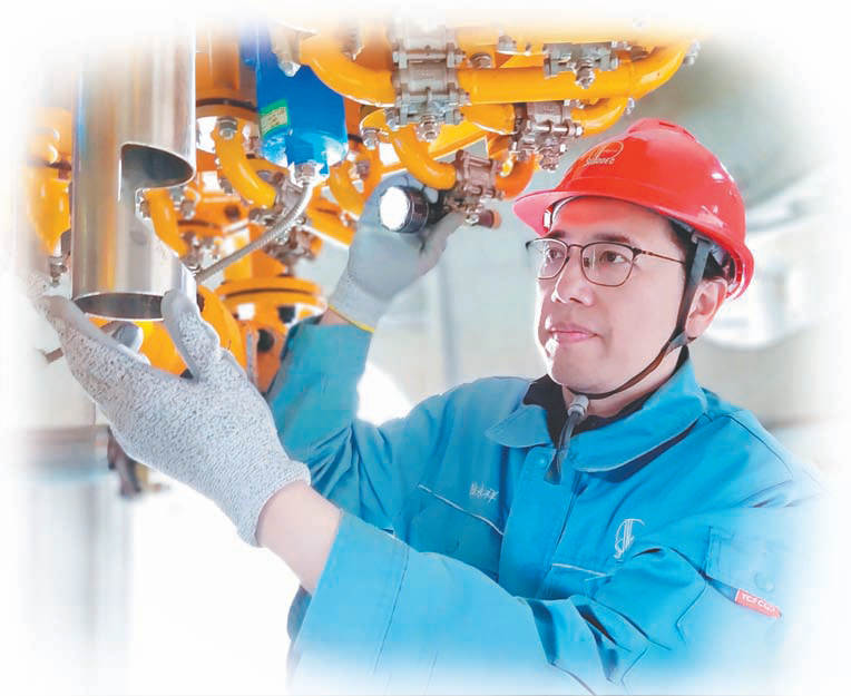 作为现场的检修负责人,他带领检修组4名员工对25/27R01缩聚反应釜内壁进行精细彻底的清洗,对每一个格室、盘环及每一段搅拌轴上的残料、降解物进行打磨,对真空气相管线的降解料进行彻底疏通清理,确保真空系统的长周期稳定运行,保证了膜级切片产品的优良品质。