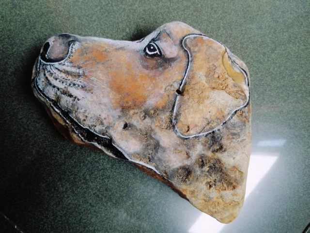 作为市级传承人,吴超不仅继承了传统画石技艺,更在创作中融入自己的理解与创新。他的作品《连年有余》《弥勒佛》《山中猛虎》等,既保留传统民俗韵味,又展现独特的艺术个性。
