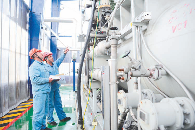 华东石油局和南化公司合作的20万吨/年二氧化碳捕集利用与封存(CCUS)项目,自2024年投运以来,已累计回收二氧化碳尾气突破7500万立方米,通过压缩液化,形成约15万吨液态二氧化碳,用于油田驱动原油增产并实现地下封存,有效助力油田增储上产与节能降碳。