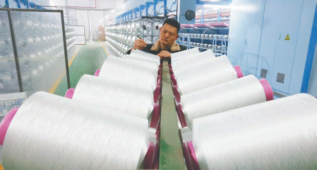 3月10日,连云港高新区海州工业园,连云港飞雁毛毯有限责任公司更新改造后的加弹车间里,工人在巡视全新的生产线运行情况。近年来,连云港市以“两重”“两新”为抓手,聚焦重点领域扩投资、稳消费,加密开展设备更新供需对接,加快淘汰落后产品设备,通过技术创新和改进,不断缩短生产周期,降低原材料成本,为投资增长提供支撑,大幅提升企业市场竞争能力和优势。耿玉和 摄